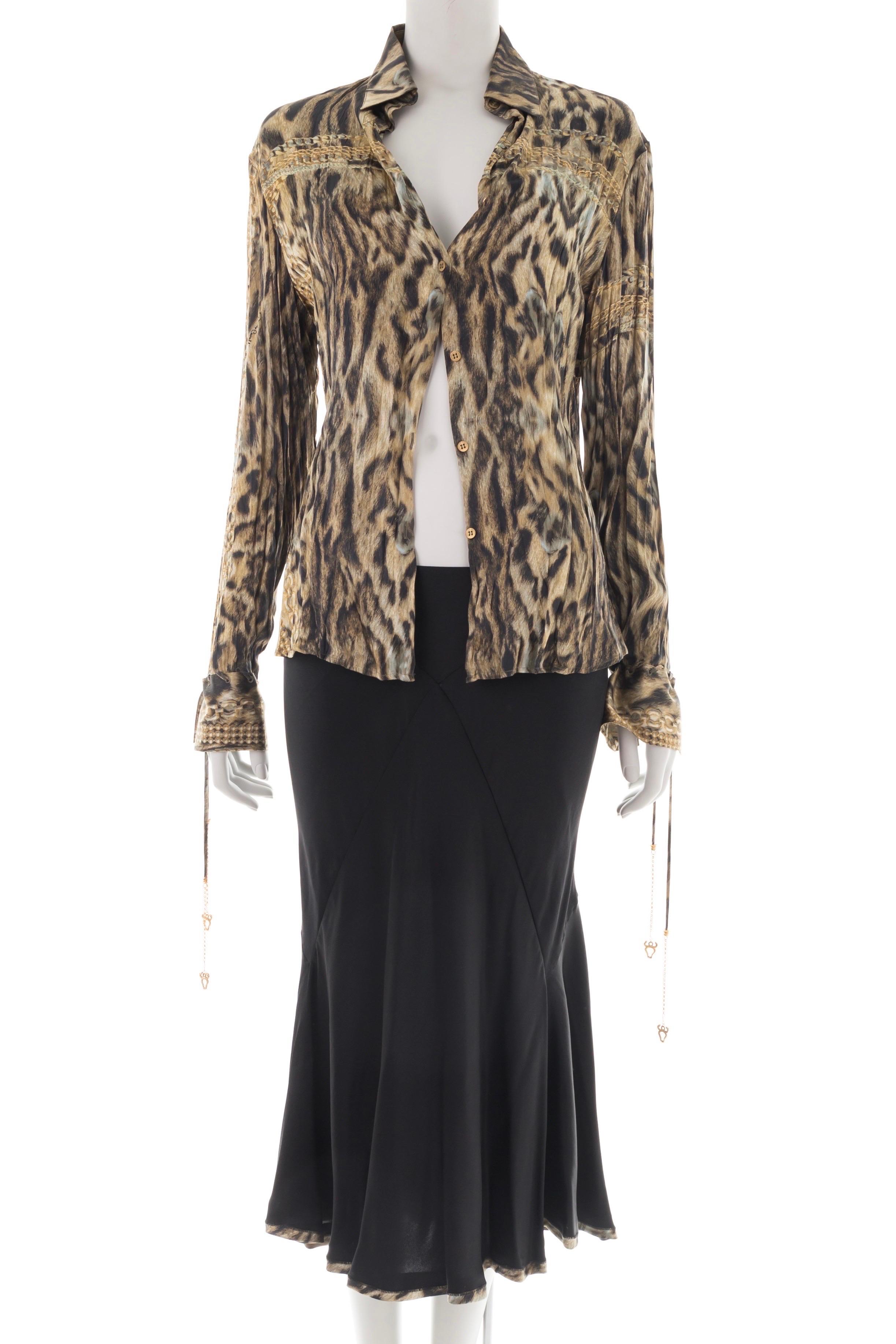 Roberto Cavalli F/W 2003 Black & Cheetah Silk Mermaid Skirt Suit